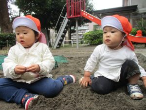 0.1歳児クラスのお友達はさくら公園で過ごしました。