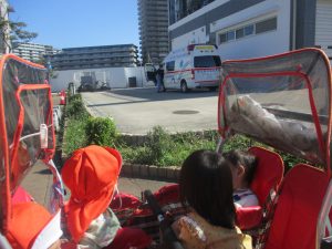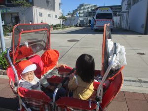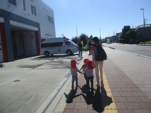 消防署の前では必ず「おっ!消防車!」や「救急車、いないねぇ~」とお子様達より、働く乗り物のチェックが入ります♪