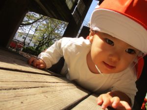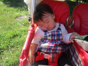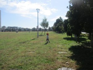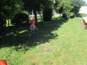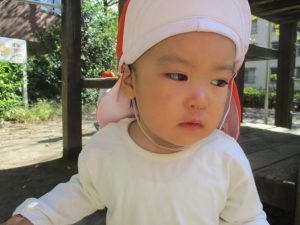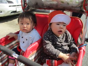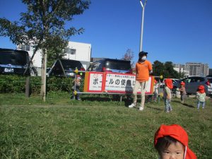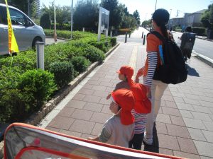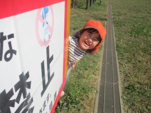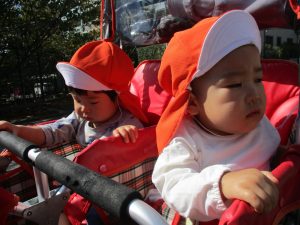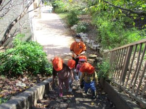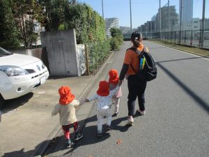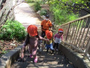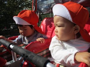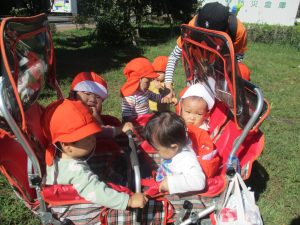 0、1歳児クラスのお友達は防災公園へおでかけ。