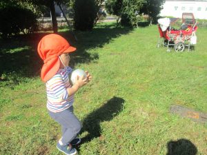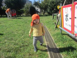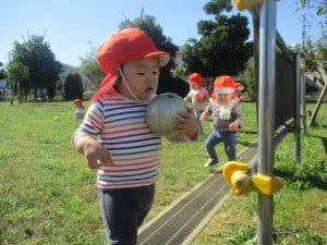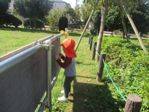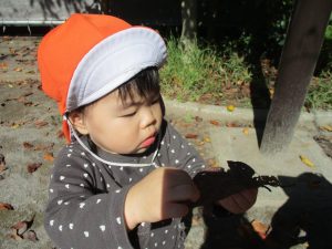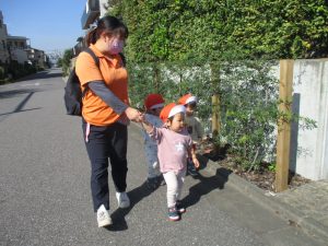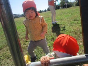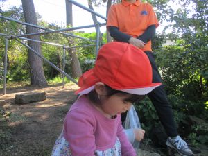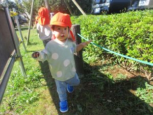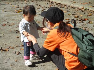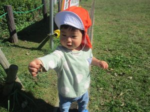 0、1歳児クラスのお友達は、”秋”をたくさん感じられるさくら公園にて、ゆったりと過ごしました。