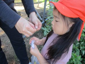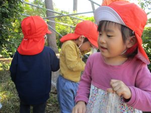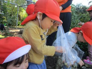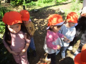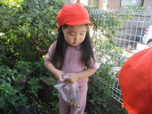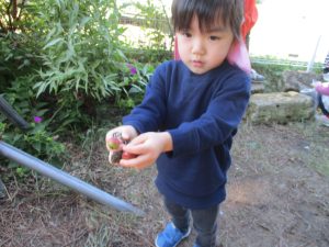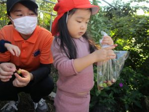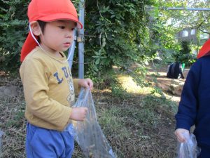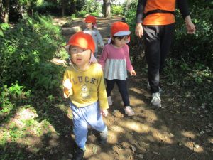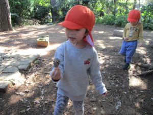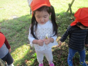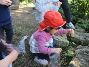 2歳児クラスのお友達は、今週2度目の谷津コミュニティセンターへ”秋の実採集”にお出かけをしました♪