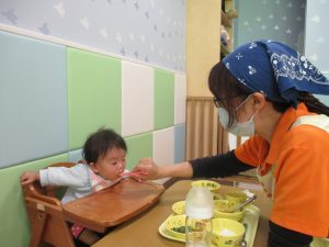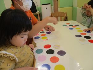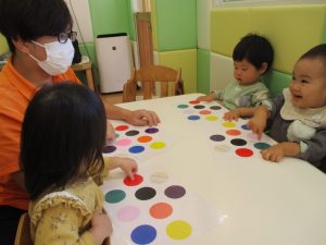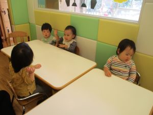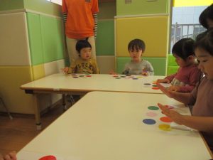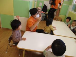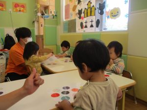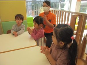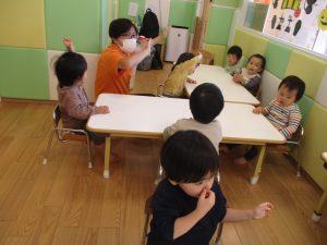 数や文字に興味の出てきた2歳児クラスのお友達は、先生と一緒に「1~2~3~…よし、いくよー!」と数を数えて、簡単な鬼ごっこをすることもできるようになってきました!