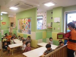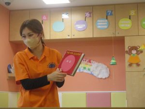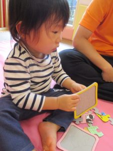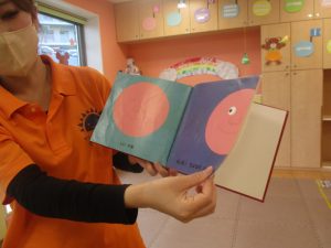 「今のみんなの気持ちはどんなお顔かな?」とお話ししながら、それぞれがいろいろな表情を作って楽しみながら見ております。