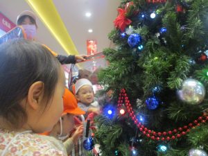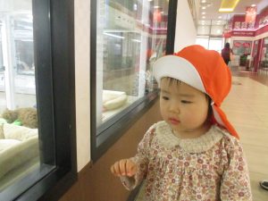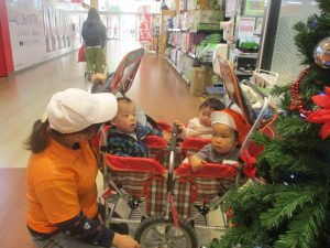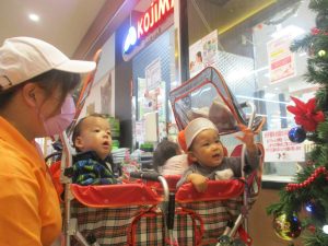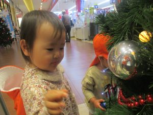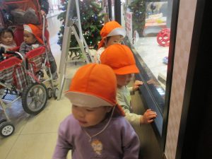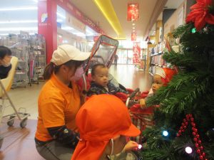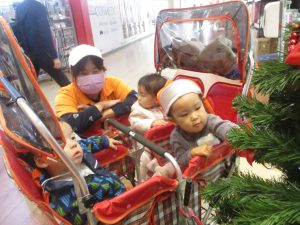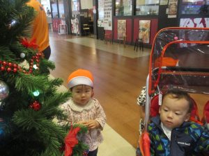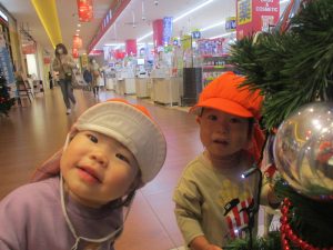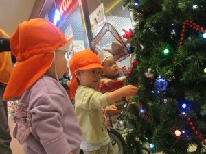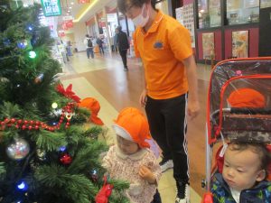 1歳児クラスのお友達は園周辺のモール内にありますクリスマスツリーを見に行きました。