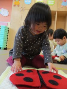 お顔には…「めがふたつ…はなはひとつ…くちもひとつ…」と、みんなも自分のお顔に興味津々の様子です♪