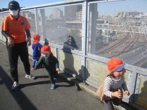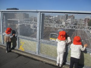 2歳児クラスのお友達は津田沼駅まで電車を見に行きました。