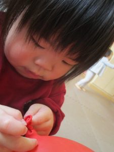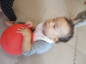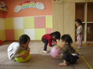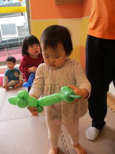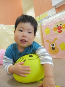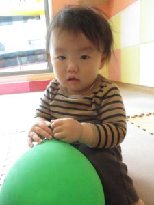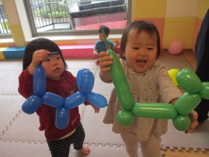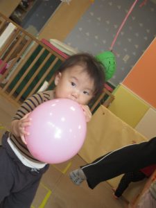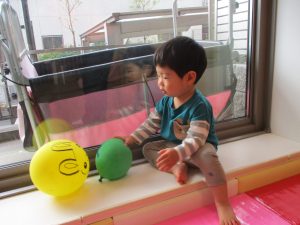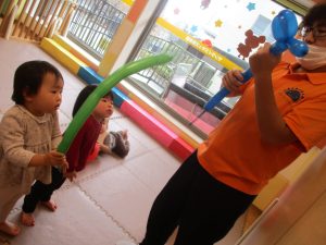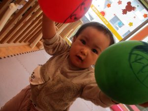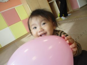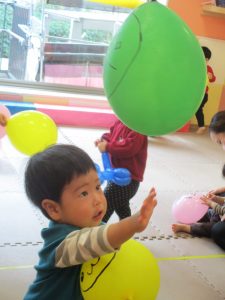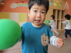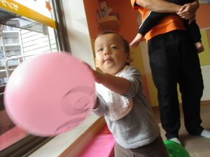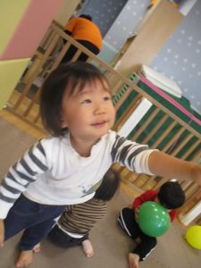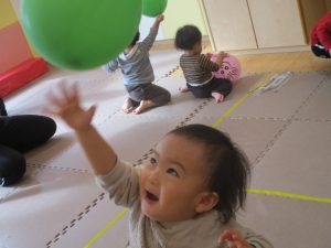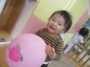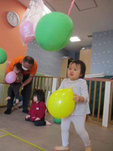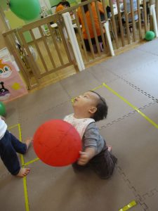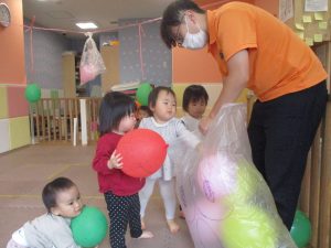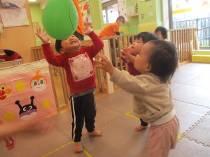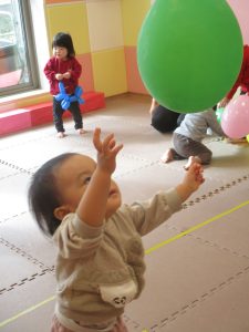 0、1歳児クラスのお友達はみんなで風船遊びを楽しんでおりました。