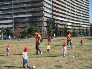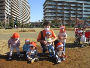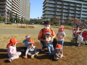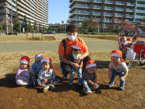 0.1歳児クラスのお友達は防災公園にて過ごしました。