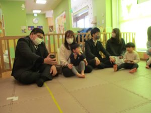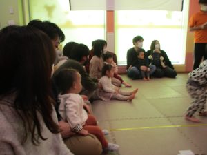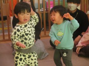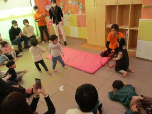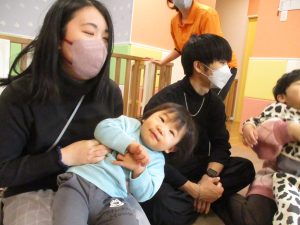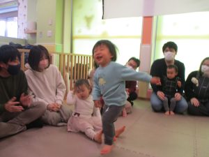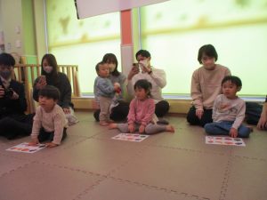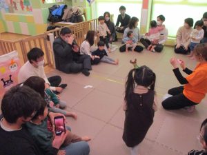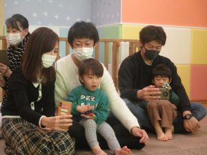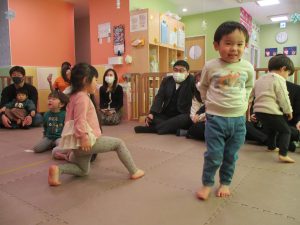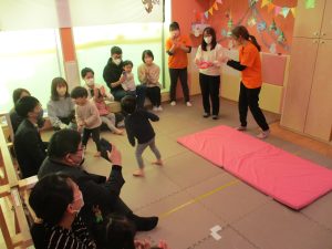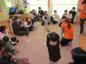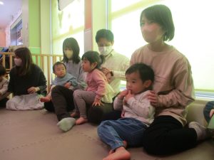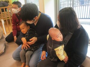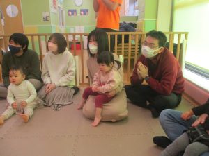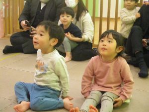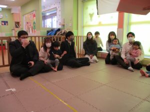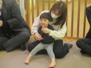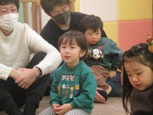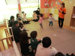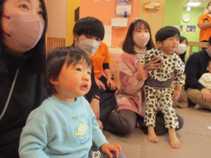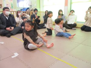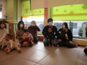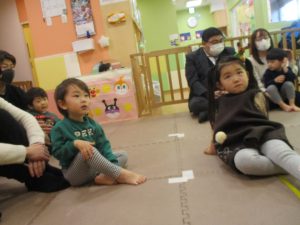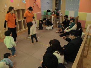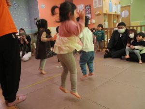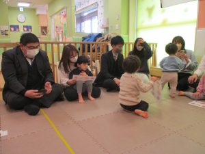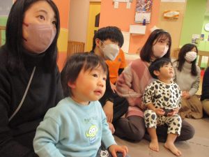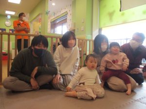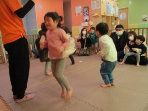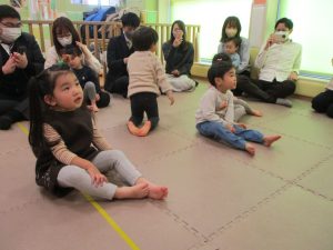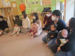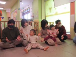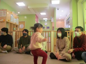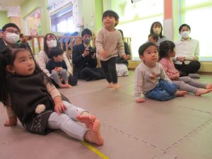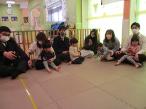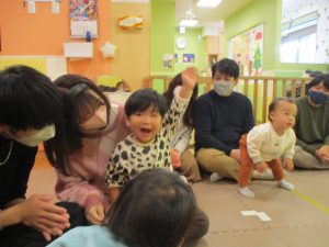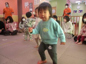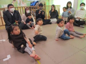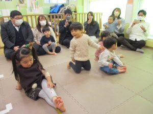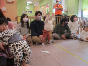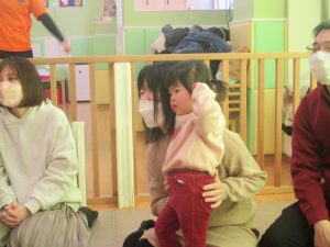 2歳児クラスのお友達も普段とは違う雰囲気に少し戸惑う場面もございましたが、保護者様参加型の行事には慣れてくれているようで普段の様子も存分に発揮できたのではないでしょうか?