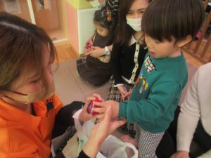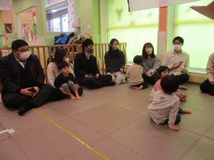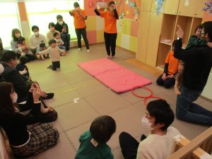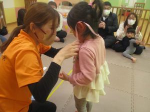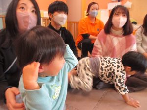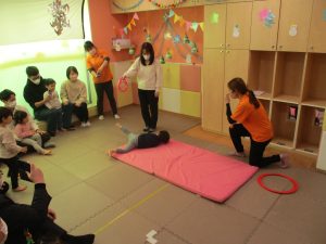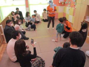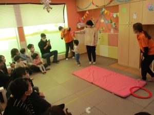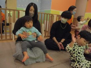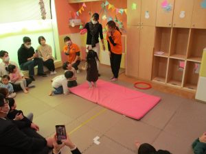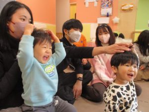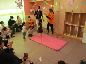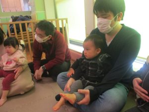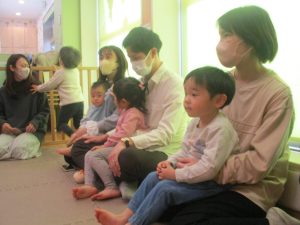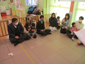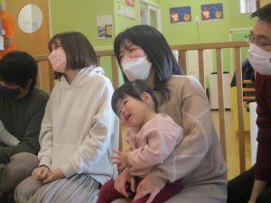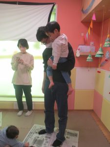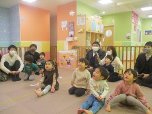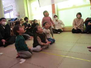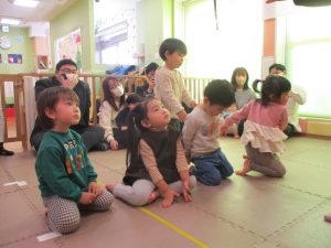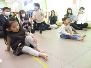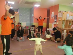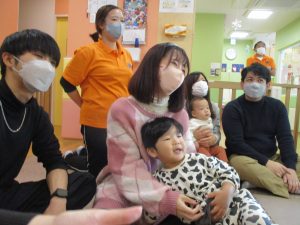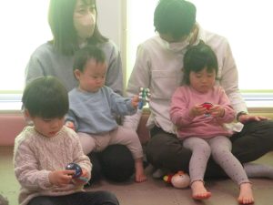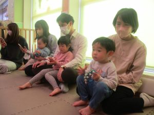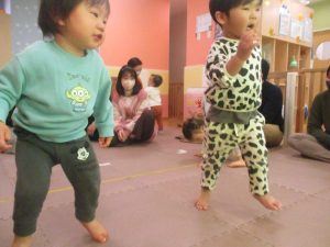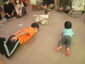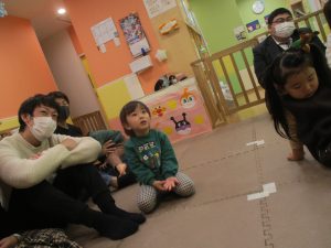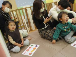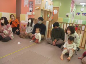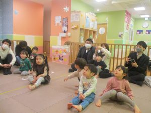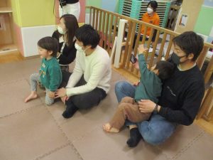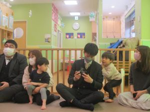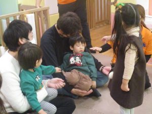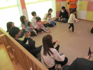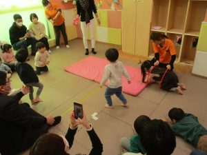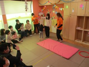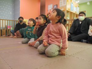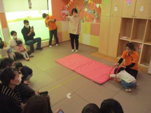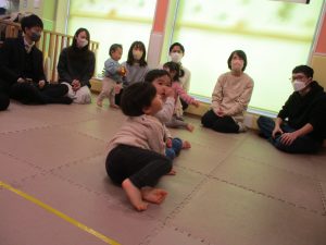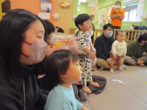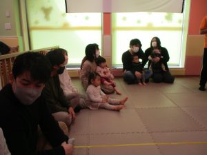 2歳児クラスのお友達も普段とは違う雰囲気に少し戸惑う場面もございましたが、保護者様参加型の行事には慣れてくれているようで普段の様子も存分に発揮できたのではないでしょうか?