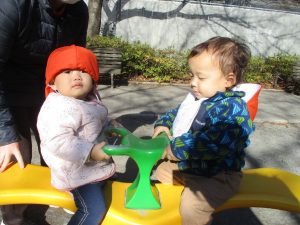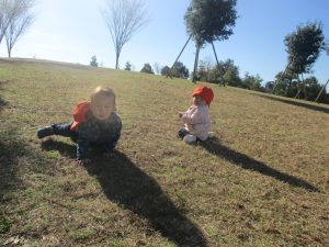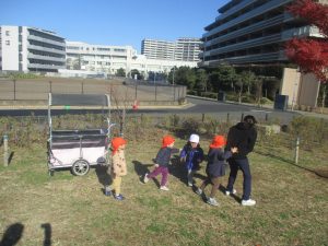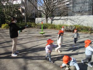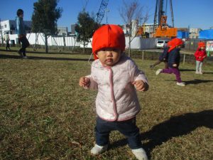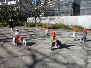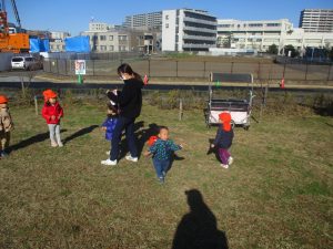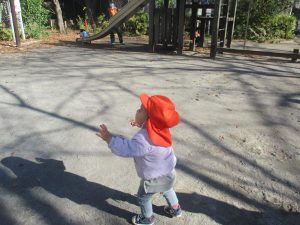 育脳活動(英語)を楽しんだ後は0.2歳児クラスのお友達で防災公園までおでかけしました♪