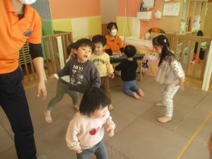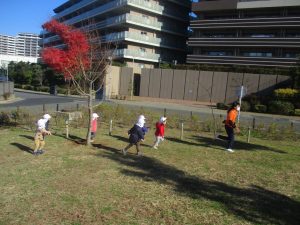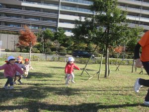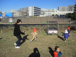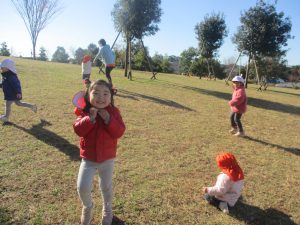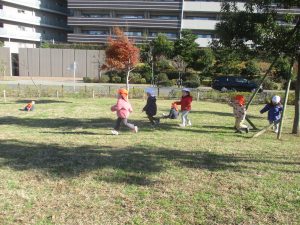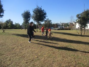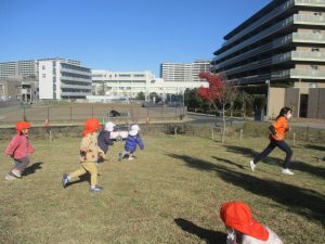 澄み切った青空の下、皆で追いかけっこを楽しみ心行くまで体を動かして過ごし心も体もポカポカです。