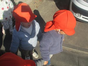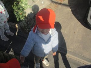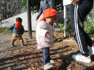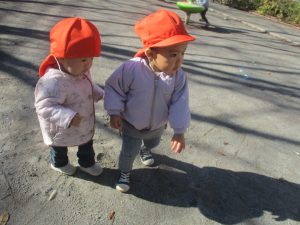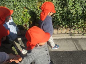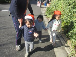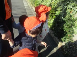 1歳児クラスのお友達も手を繋いで園周辺の戸外散歩に日々挑戦中です!!!