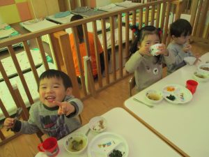 引き続き谷津園の手作り給食をモリモリ食べて大きく育って欲しいと思います♪