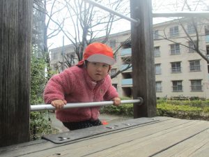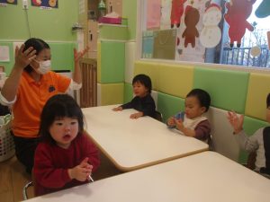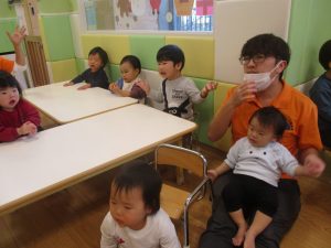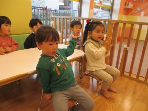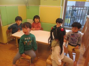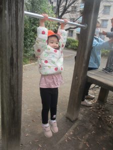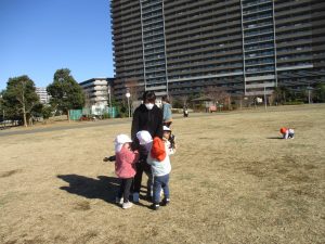 その後は皆でさくら公園まで遊びに行きましたが、育脳カリキュラムの体操の続きをこちらで行ないました。