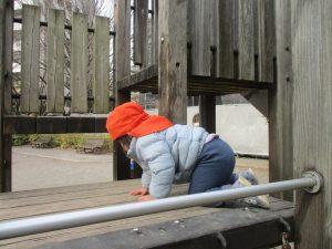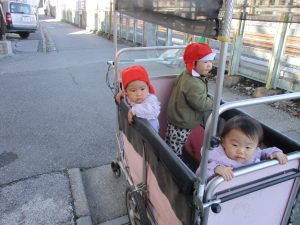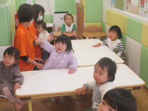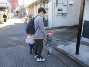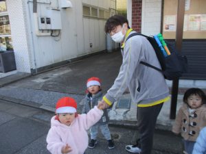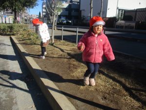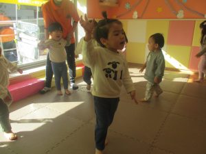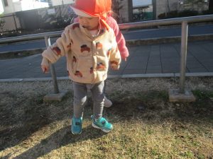 1歳児クラスにおきましては、手を繋いで歩ける距離も日に日に増しており成長を強く感じております。