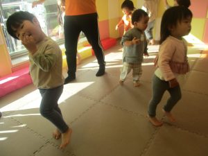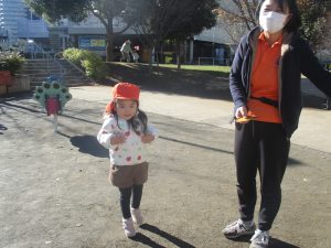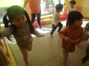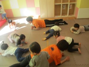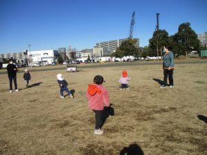 普段は室内で行う事が多い育脳カリキュラムの体操ですがこのような応用も時折混ぜていきたいと思います。