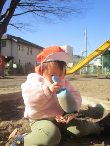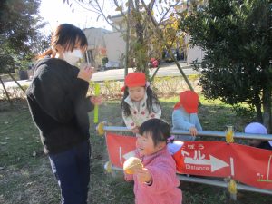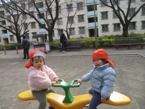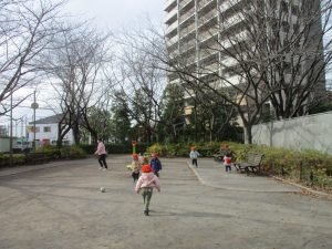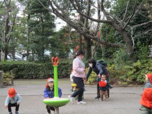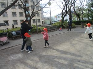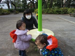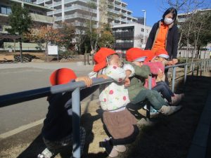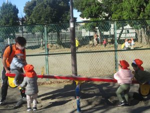 1歳児クラスのお友達は園裏の6丁目公園にて過ごしました。