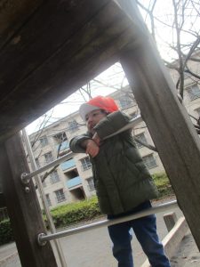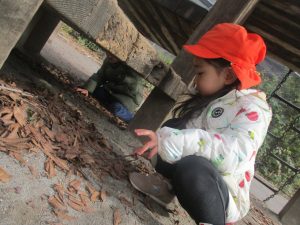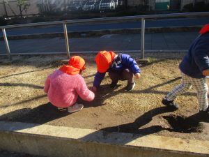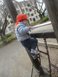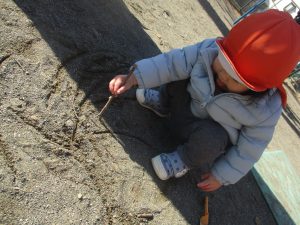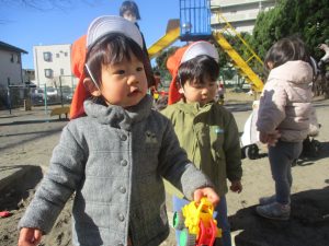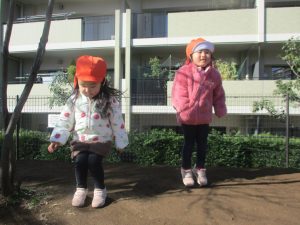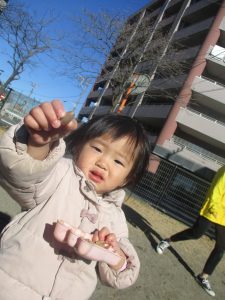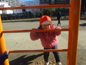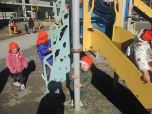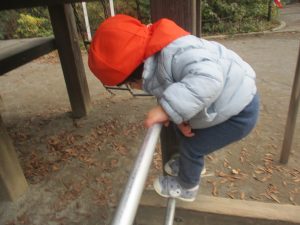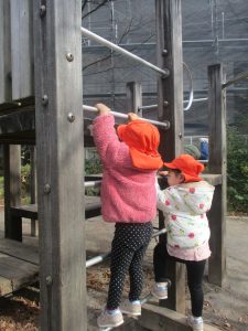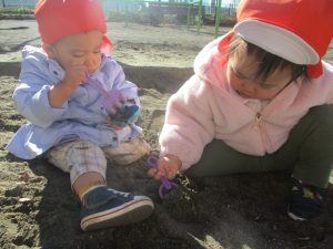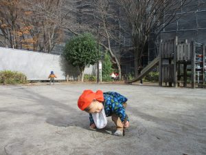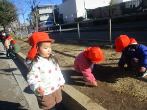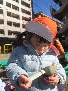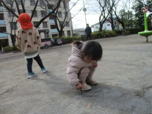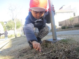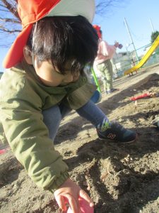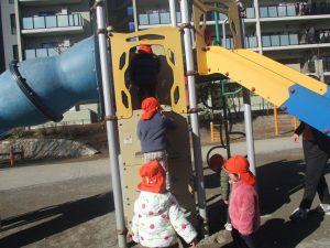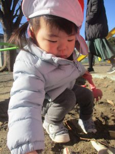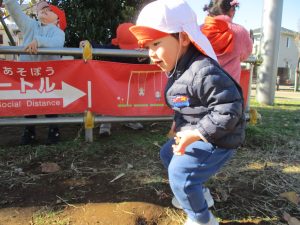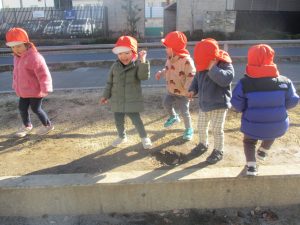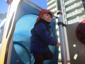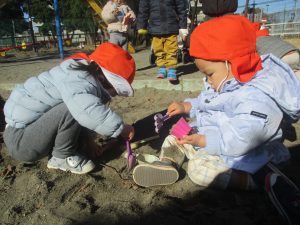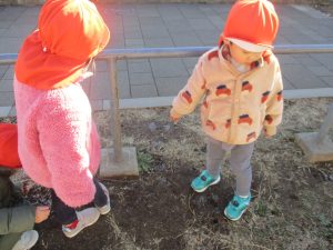 固定遊具を使用してたくさん体を動かして遊んだり「霜柱」を見つけては皆で興味津々に観察をしておりました。