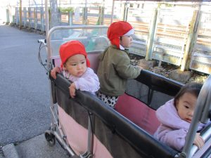 0.1歳児クラスのお友達は津田沼駅周辺まで電車を見に行きました。