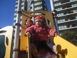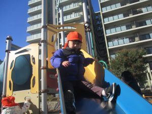 2歳児クラスのお友達はキャロット公園までおでかけ。