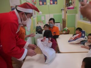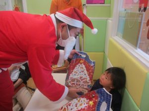 突然の訪問に驚きと喜びの表情が入り混じっておりましたが、とても喜んでくれました。1人ひとりも立派にプレゼントをもらう事が出来、逞しさも感じました♪