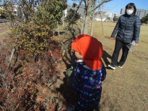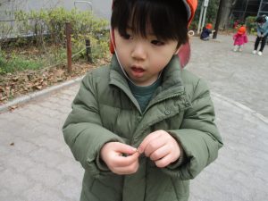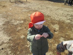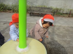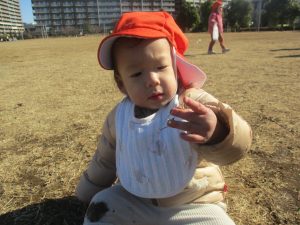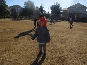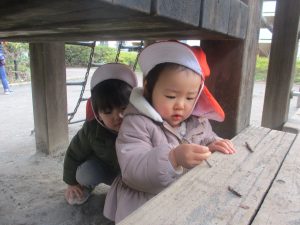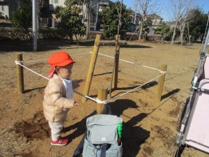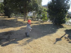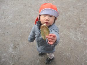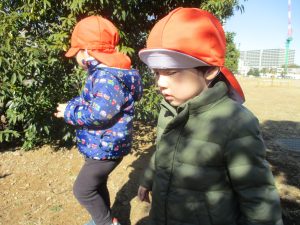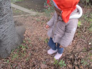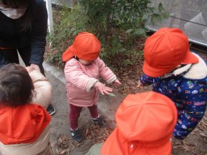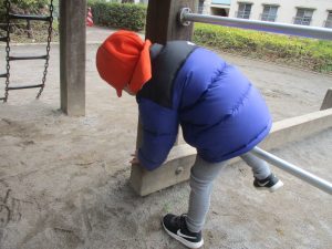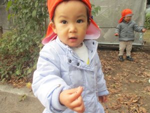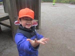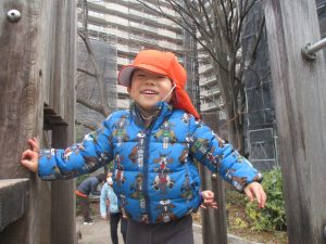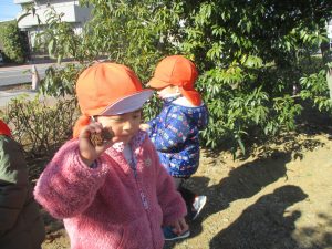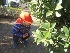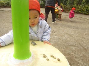固定遊具で体を動かしたり、公園内を散策し枯れ葉や石を集めては見立て遊びを楽しむ等、大満足の様子でした。