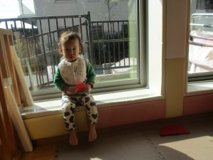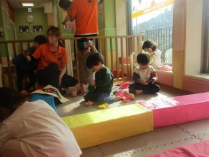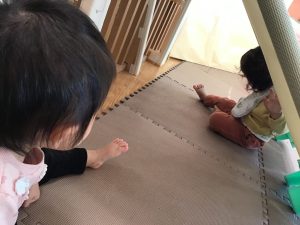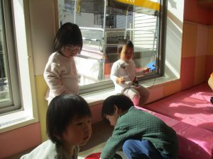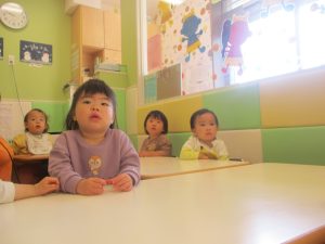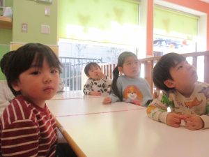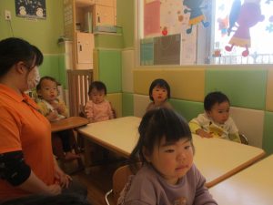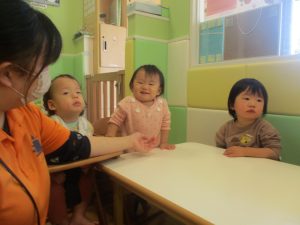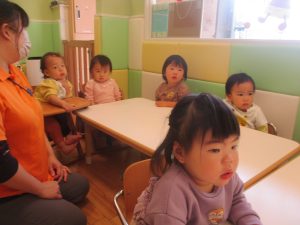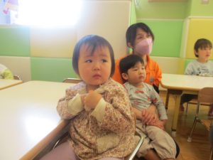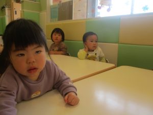 0歳児クラスのお友達は室内にてお留守番となりました!