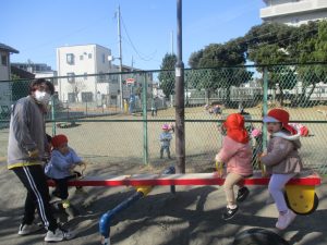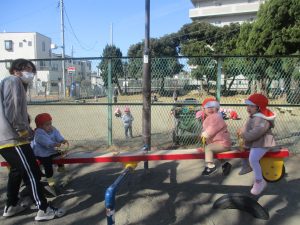 1歳児クラスのお友達は園裏の6丁目公園にて過ごしました。