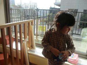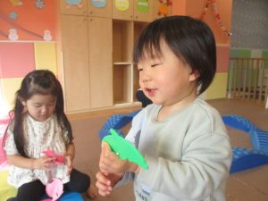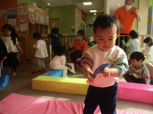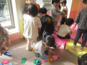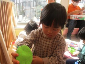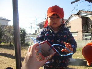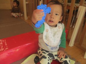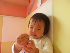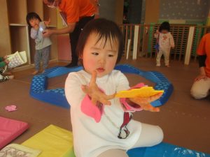 紐通しやボタンはめはあまり遊びの中に取り入れておりませんでしたが、こちらの想像以上に集中して遊ぶ姿があり今後も適宜取り入れていこうと思います♪