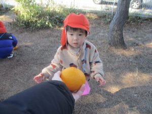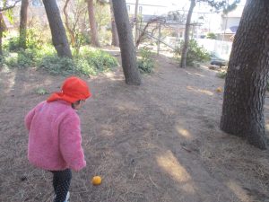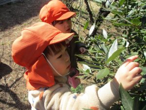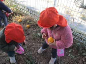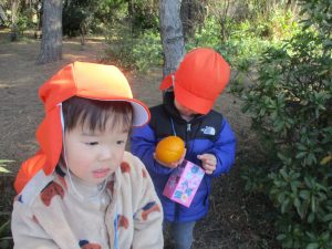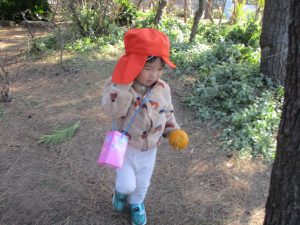 木の実や葉っぱや果実等、様々な自然物が落ちており興味津々の大冒険となりました♪