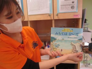 内容としましては潮の満ち引きを具に教えてくれる、大人にも子どもにも興味が沸く自然現象の絵本となっております!