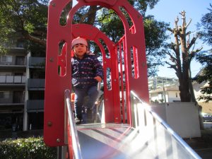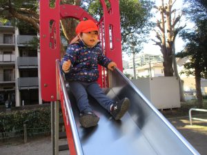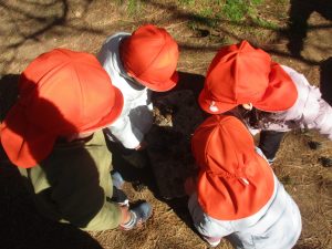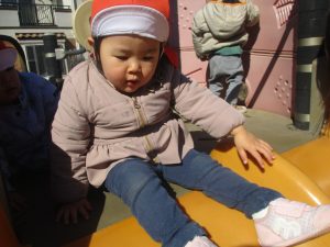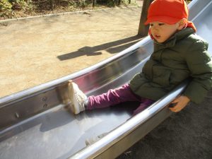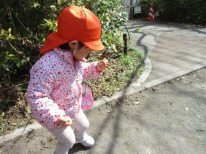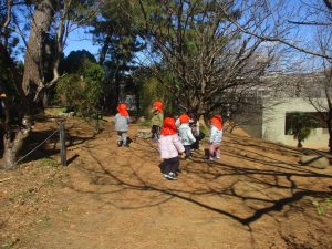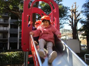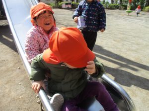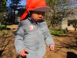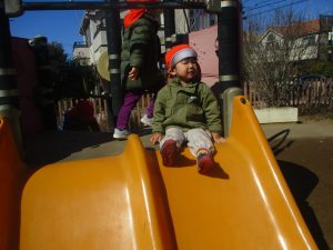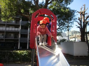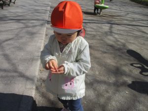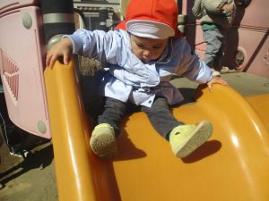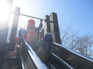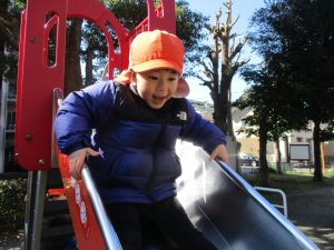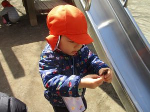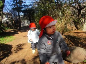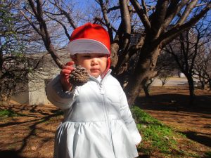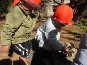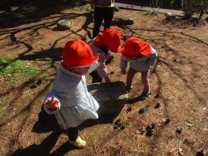 大好きなローラー滑り台でたくさん体を動かしたり、奥の林を探索し木の実探しを楽しみました。
