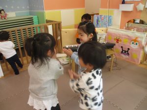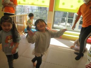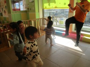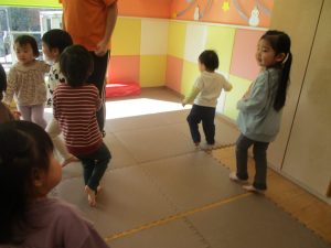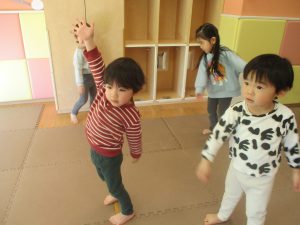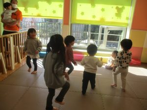 2月になると、曲のテンポを感じ取ったり、リズムに合わせて動いたりと少し難しい事にも挑戦しているところです。