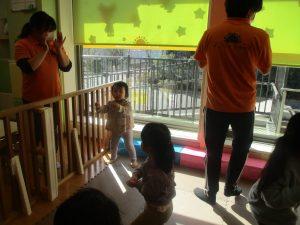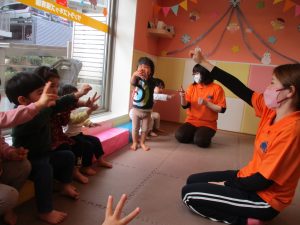 どうぶつ体操も、「うさぎさんのたいそうは~」でぴょんぴょんと跳んだり、「へびさんのたいそうは~」でニョロニョロと動いたり、可愛いお子様達の姿が見られております♡