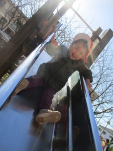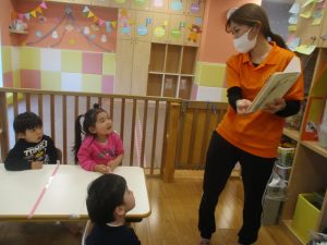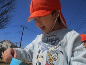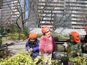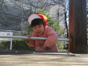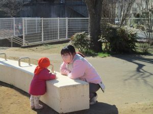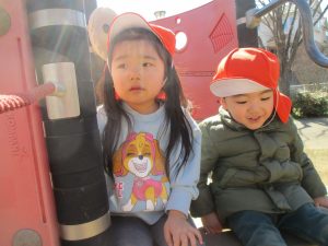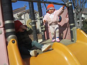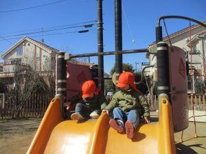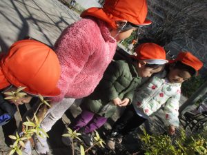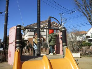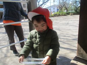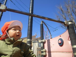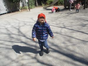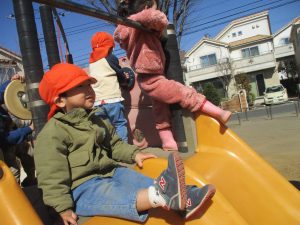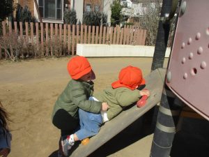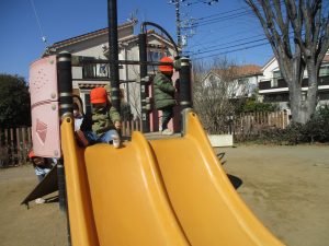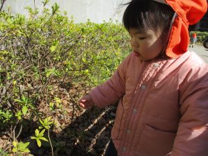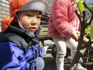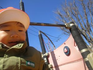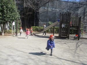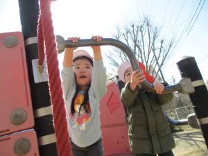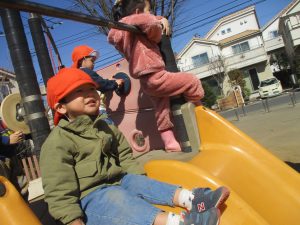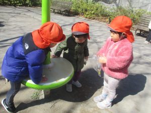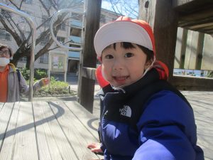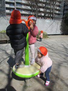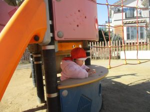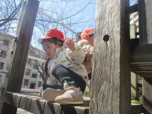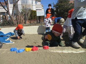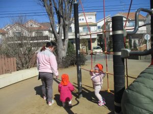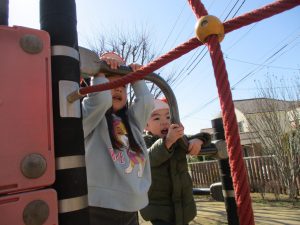 今シーズン1番?の暖かさとなりポカポカ陽気の下、固定遊具で体を動かしたり遊具付近でのままごと遊びに夢中でした。タンポポも咲いており、1足早い春を感じる事が出来ました!
