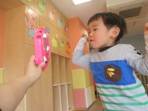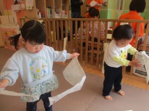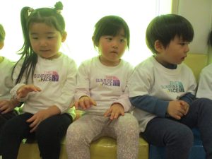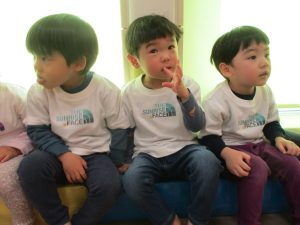 2歳児クラスのお友達はお揃いのクラスTシャツで登園♪一体感も更に増し、残り1ヶ月の谷津園生活の充実が加速していきますね。
