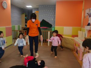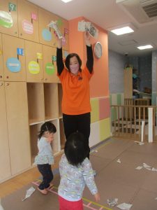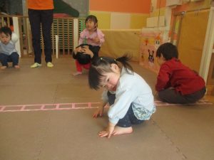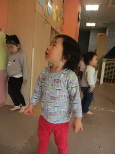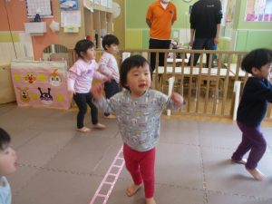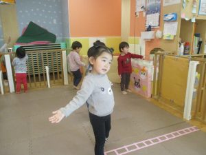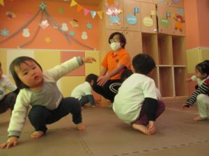 来年度サンライズキッズ保育園の「育脳カリキュラム」の「体操」を担当して下さる教授の方が体操の様子を視察に来てくれました。