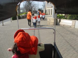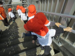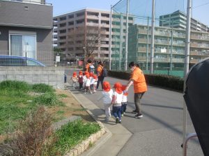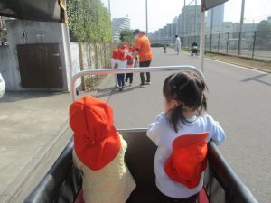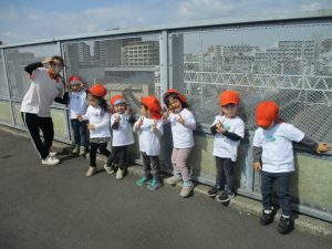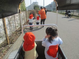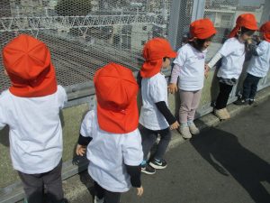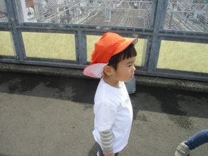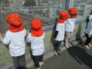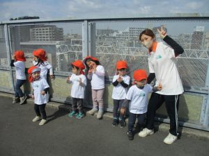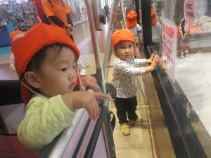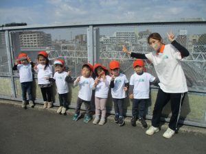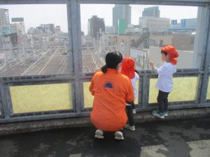 2歳児クラスのお友達はオリジナルTシャツを着て、津田沼駅周辺まで電車を見に行きました!