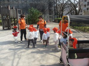 2歳児クラスのお子様は「次は○○保育園なの」と新しい環境に期待を持って日々過ごしております。