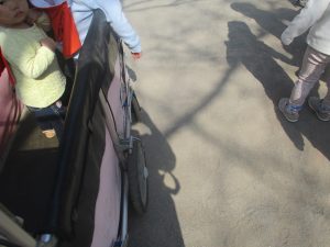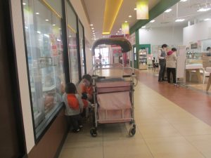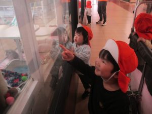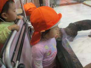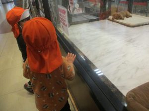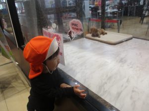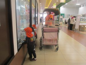 0.1歳児クラスのお友達は園周辺のモール内のペットショップまで戸外散歩を行いました。