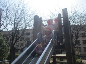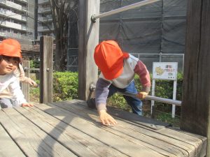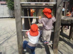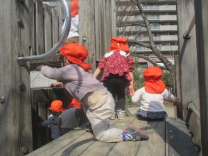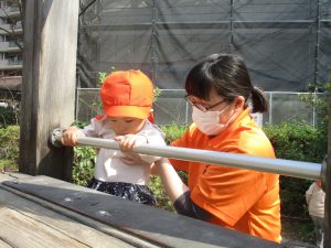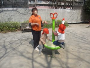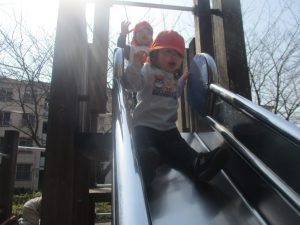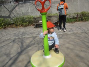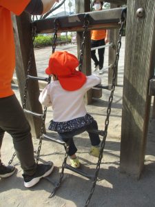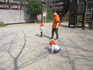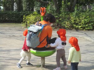 広場での追いかけっこや固定遊具を使用して思い切り体を動かして遊んだり、公園内の自然物探しを楽しみました♪