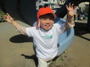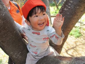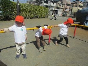 ポカポカ陽気の下、季節の移り変わりを感じながら楽しそうに体を動かして遊んでおります!