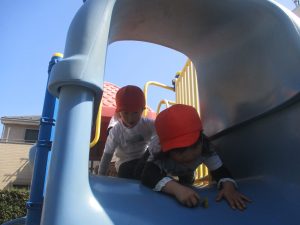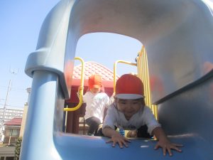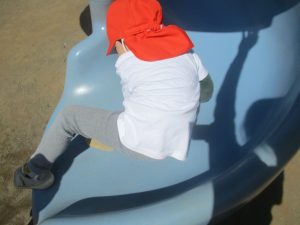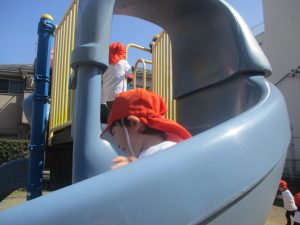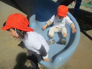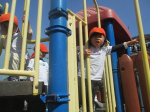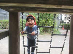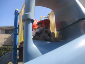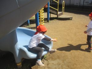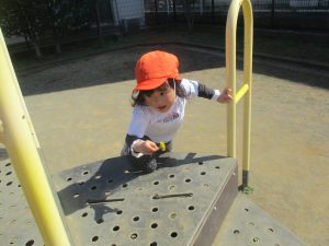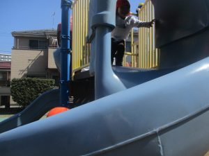 ここ数日では比較的気温が低い日となりましたが、固定遊具を使用して思い切り体を動かして遊び心も体もポカポカですね♪