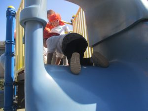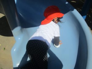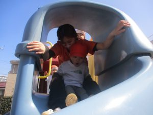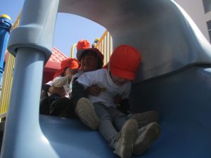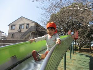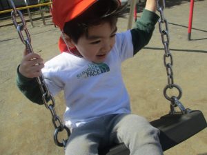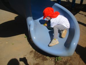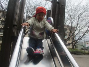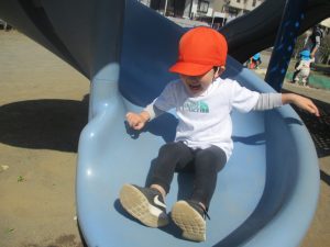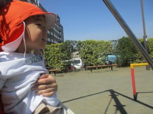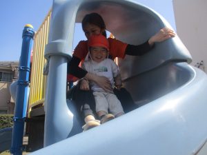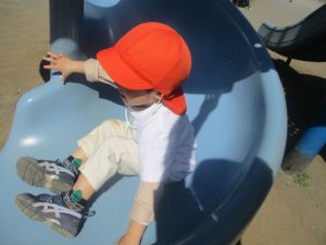 大好きな滑り台やブランコを先生と一緒に乗り、楽しそうに体を動かしておりました♪