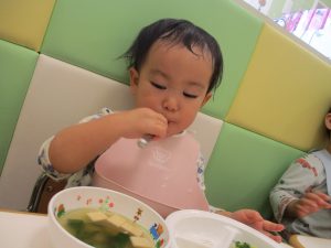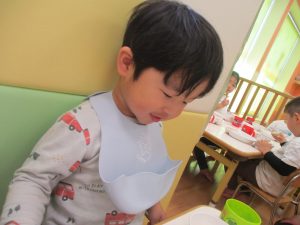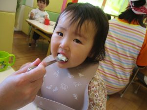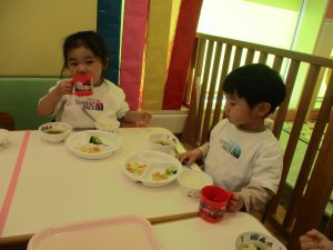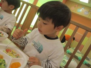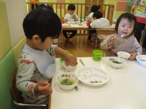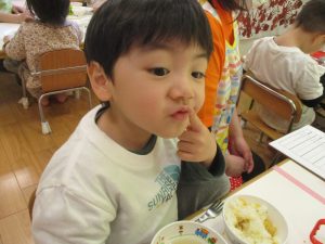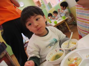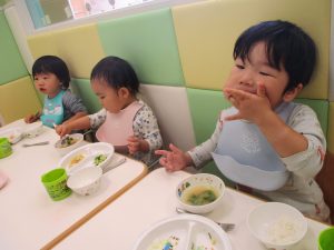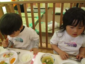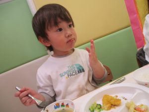 2歳児クラスのお友達にとっては残り少ない谷津園給食になりますが、たくさんおかわりして大きくなろうね。