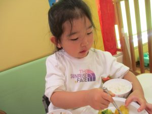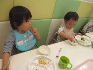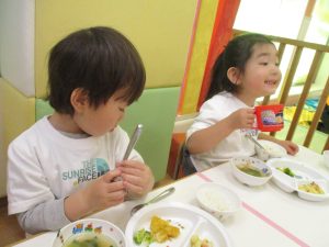 たくさん体を動かした後は谷津園給食をモリモリ食べております♪