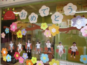 園前の玄関壁面も卒園児特化型となり、いよいよ年度のクライマックスを迎えております!