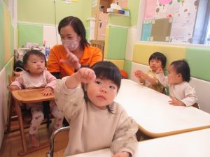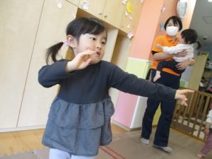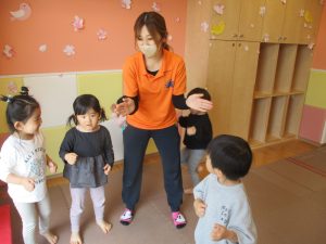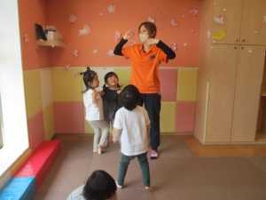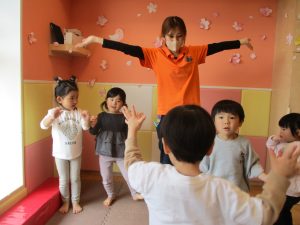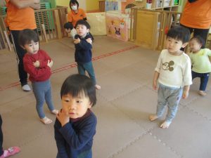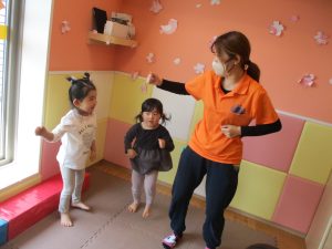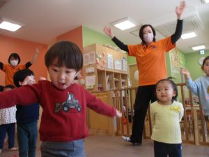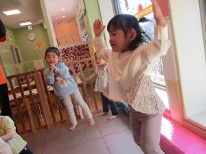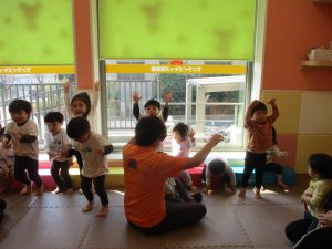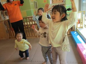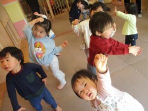 また、一年間を通してお子様達の楽しんでいた「おもちゃのチャチャチャ」や「きらきら星」、「幸せなら手をたたこう」などたくさんの童謡もみんなで賑やかに歌って踊っております。