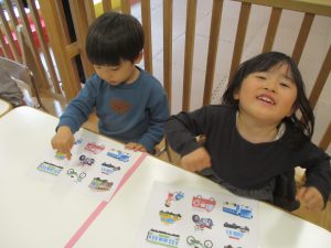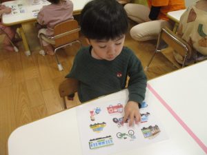 英語の時間以外でも「ファイヤートラック(消防車)だ!」や「バイセコー(自転車)来たよ!」と乗り物の英単語を活用するようになってきました♪
